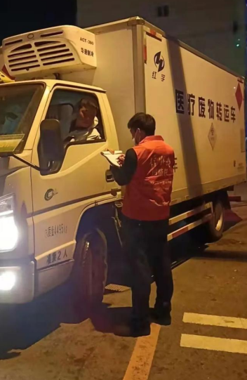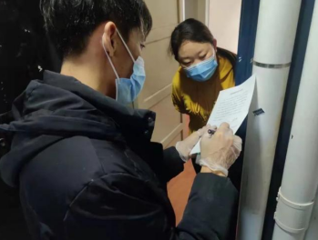“您好,麻烦出示一下证件……”纪大伟一遍又一遍重复着这句话语,开始了夜间的工作。东北初春的夜晚,寒风依然刺骨,为保证出入登记严密细致,纪大伟和另一名卡点同事要始终站在室外,而这一站就是4-5个小时。扫健康码、测体温、填表……他身穿的红马甲仿佛是黑夜里一束亮眼又温暖的光,刺破黑暗,照亮每一个夜晚归家的人。