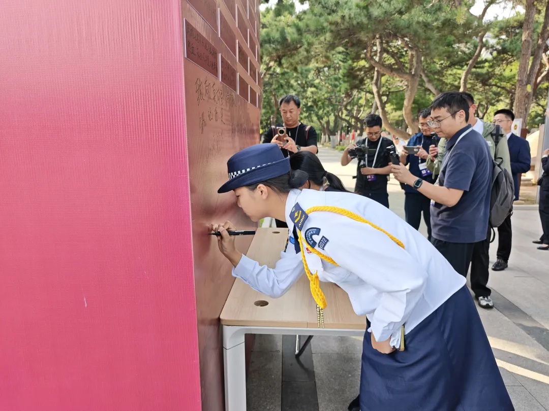 香港培侨中学升旗队队员参观展览后留言。闫行 摄