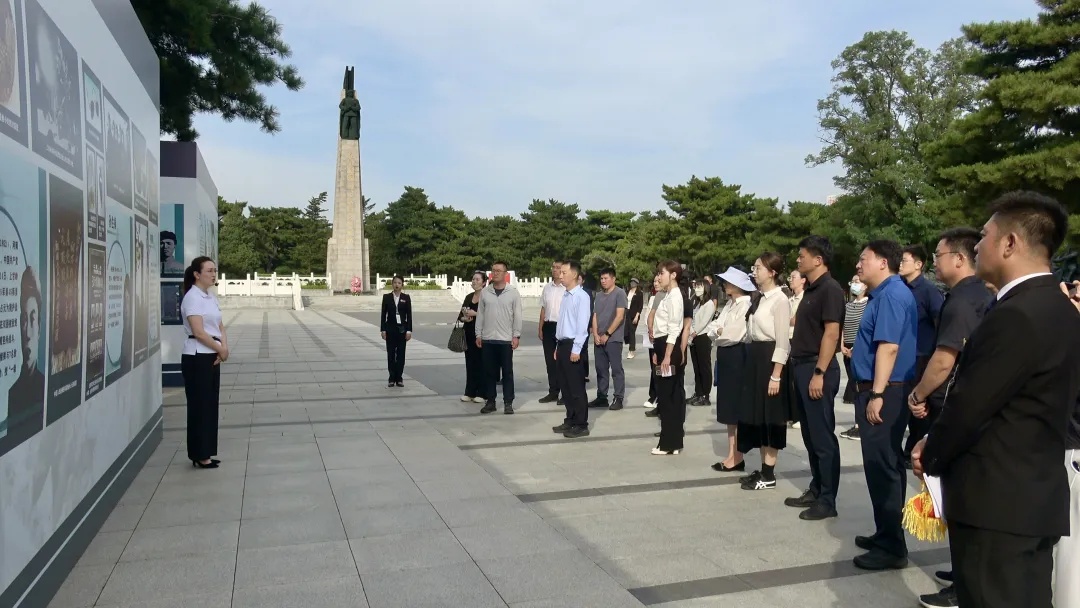 中央和国家机关青年代表参观展览,认真聆听退役军人事务部烈士纪念设施保护中心青年红色文化宣讲队队员讲解。闫行 摄
