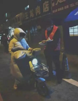 “您好,麻烦出示一下证件……”纪大伟一遍又一遍重复着这句话语,开始了夜间的工作。东北初春的夜晚,寒风依然刺骨,为保证出入登记严密细致,纪大伟和另一名卡点同事要始终站在室外,而这一站就是4-5个小时。扫健康码、测体温、填表……他身穿的红马甲仿佛是黑夜里一束亮眼又温暖的光,刺破黑暗,照亮每一个夜晚归家的人。