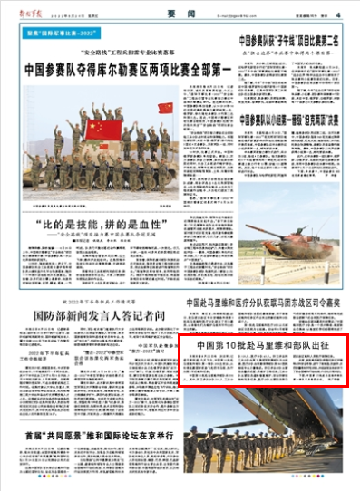 解放军报长春8月25日电 刘志军、记者牛辉报道:今天下午,中国第10批赴马里维和部队第一梯队208名官兵,从长春龙嘉国际机场飞赴西非马里,执行为期1年的维和任务。