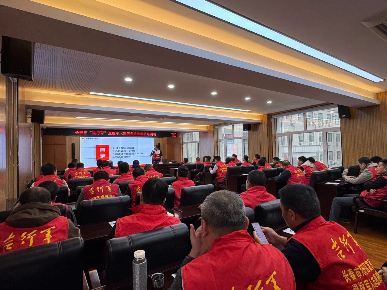 为进一步提升退役军人志愿者应急救护专业能力,充分发挥退役军人在日常急救中的重要作用,近日,长春市退役军人事务局联合市红十字会举办的长春市“吉行军”退役军人志愿者应急救护培训班拉开帷幕。本次培训邀请长春市红十字会有关资深讲师前来为参训学员进行应急救护的理论授课和实操演练,来自吉林省、长春市以及各县(市、区)“吉行军”退役军人志愿服务队等60名退役军人志愿者参加培训。