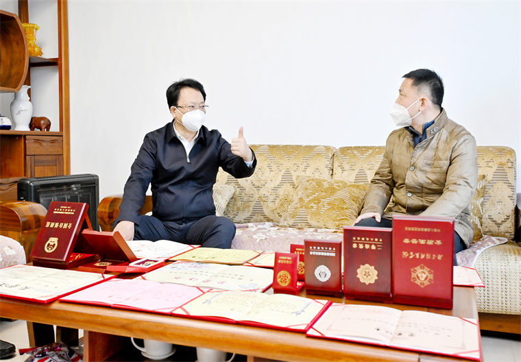 1月10日,省委书记景俊海到革命伤残军人王琦家中看望慰问。邹乃硕 摄