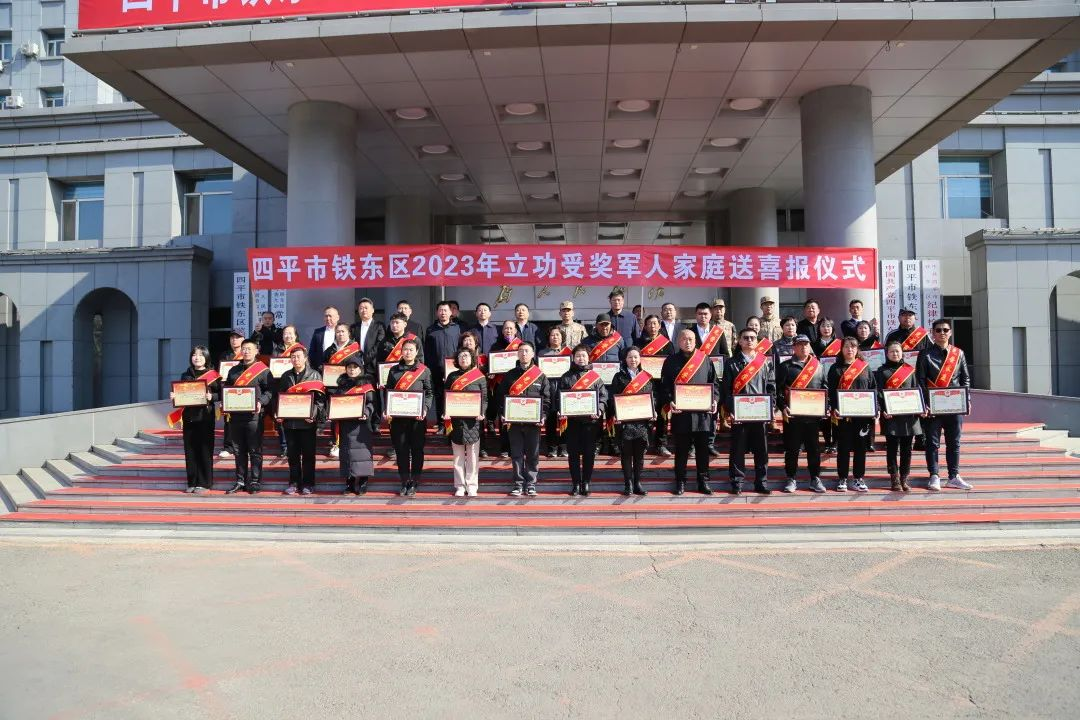为深入学习贯彻党的二十大精神,营造尊崇军人职业、尊重关爱功臣模范的浓厚社会氛围,3月26日上午,四平市退役军人事务局联合铁东区政府、铁东区武装部举办为立功受奖军人家庭送喜报活动。市委常委、四平军分区司令员张世强,市退役军人事务局党组书记、局长王亚波,铁东区委书记王光普及其他相关部门负责同志参加活动。