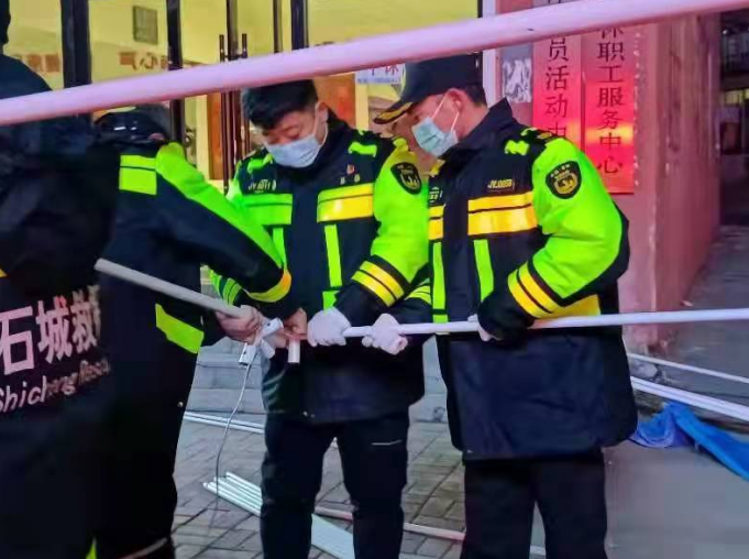 “大家尽量轻拿轻放钢管,不要影响居民休息!”深夜,张忠组织队员们冒着大雪搭建防疫帐篷,忙碌中的张忠还不忘提醒队员们。经过夜以继日奋战,张忠和他的队友们搭起了一顶顶防疫帐篷,保障了核酸采样工作顺利进行。