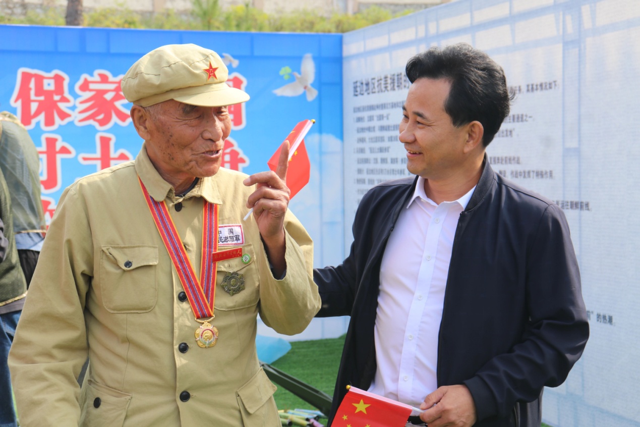 几位老兵围坐在一起,回忆起九三阅兵时的场景,参加抗美援朝战争老兵金凤洙说:“在电视上看九三阅兵时,看到那些先进装备,听到‘正义必胜!和平必胜!人民必胜!’的铿锵口号,我激动得睡不着觉!今天在科普展上,看到国家国防和航天事业这么厉害,我更加坚信这三个‘必胜’!。”