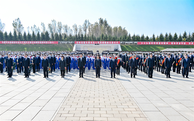 9月30日是第九个烈士纪念日,省暨长春市向人民英雄敬献花篮仪式在长春市烈士陵园举行。省委书记、省人大常委会主任景俊海,省委副书记、省长韩俊,省政协主席江泽林等我省党政军领导和老战士、老同志、烈士家属、长春市各界干部群众代表一起,向人民英雄敬献花篮,缅怀革命英雄,弘扬烈士精神,赓续红色血脉,矢志团结奋斗,表达始终牢记习近平总书记殷殷嘱托和谆谆教诲,从革命先烈英雄事迹中汲取智慧力量,踔厉奋发、勇毅前行、团结奋进,坚决扛起“新担当、新突破、新作为”重大责任使命,奋力谱写全面建设社会主义现代化新吉林精彩篇章的坚定信心决心。