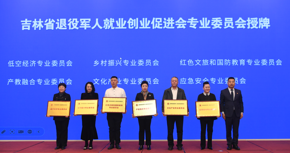 吉林省退役军人就业创业促进会向专业委员会授牌。