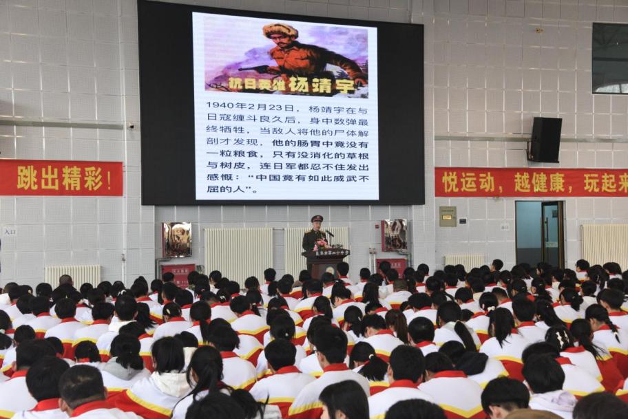 宣讲团团长杨海波在长春市二十中学宣讲《抗联英雄杨靖宇》故事。