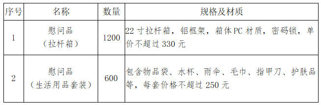 (二)项目名称:春节慰问品采购项目(拉杆箱、生活用品套装)。