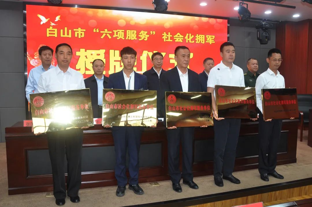 仪式上,市领导为拥军企业和商户代表授牌,市退役军人事务局局长、市双拥办主任于杰与新加入的拥军企业代表签订拥军合作协议,白山市长辉石油有限公司经理陈彦宇代表拥军企业和商户进行了交流发言,白山军分区动员处处长付磊代表驻军部队做了讲话。