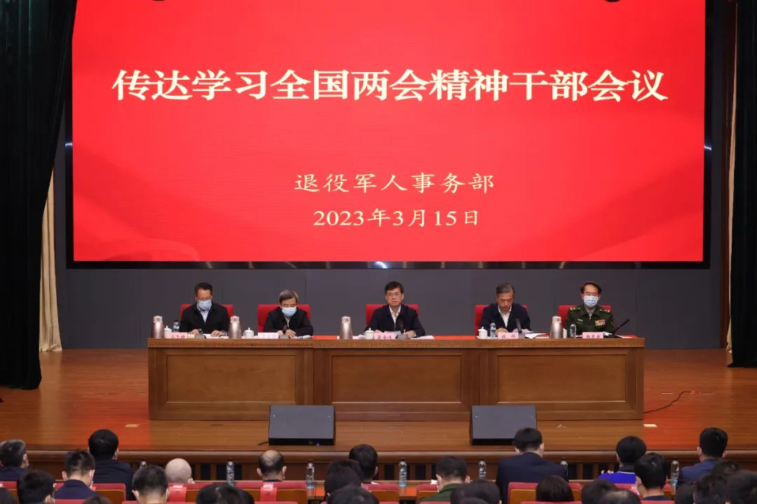 会议指出,要深刻认识党和国家各项事业之所以取得历史性成就、发生历史性变革,根本在于习近平总书记作为党中央的核心、全党的核心掌舵领航,根本在于习近平新时代中国特色社会主义思想科学指引。要深刻领悟“两个确立”的决定性意义,增强“四个意识”、坚定“四个自信”、做到“两个维护”,坚持不懈用习近平新时代中国特色社会主义思想凝心铸魂,全面加强党对退役军人工作的领导,确保退役军人工作始终沿着正确方向前进。要将学习贯彻全国两会精神同学习贯彻党的二十大和二十届一中、二中全会精神结合起来,在融会贯通、加深理解、把握要义、指导工作上下更大功夫,迅速兴起学习宣传贯彻全国两会精神热潮。要深入践行职责使命,不断提高就业安置质量,持续做好优待抚恤工作,全力服务部队备战打仗,深入落实机构改革任务,高质量办好代表委员建议提案,不折不扣落实好党中央、国务院各项决策部署,完成好年度退役军人工作既定目标任务,为全面建设社会主义现代化国家开好局起好步作出积极贡献。