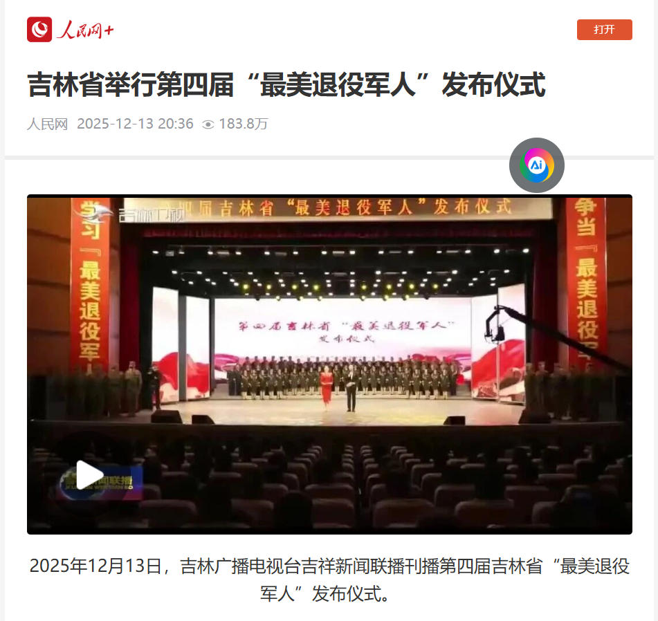 2025年12月13日,吉林广播电视台吉林新闻联播刊播第四届吉林省“最美退役军人”发布仪式。