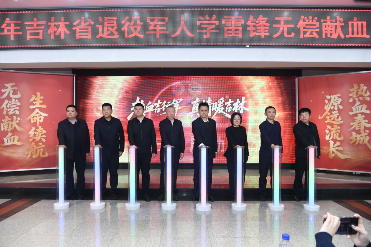 参加活动相关领导共同按下活动启动装置,“热血吉行军·真情暖吉林”2026年退役军人学雷锋无偿献血活动正式启动。