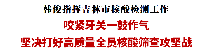韩俊强调,当前吉林市疫情处于胶着状态,各项防控措施必须不折不扣落实到位,坚决遏制疫情增长势头。要不折不扣落实从严从紧要求,坚决克服思想松懈,刻不容缓、不眠不休,全面彻底细致做好全员核酸筛查,尽快阻断疫情传播链条。