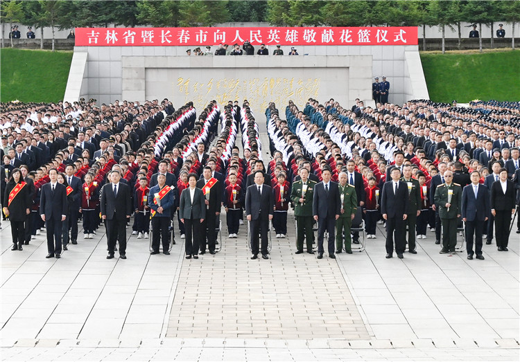 9月30日,省暨长春市向人民英雄敬献花篮仪式在长春市烈士陵园举行。邹乃硕 张野 摄