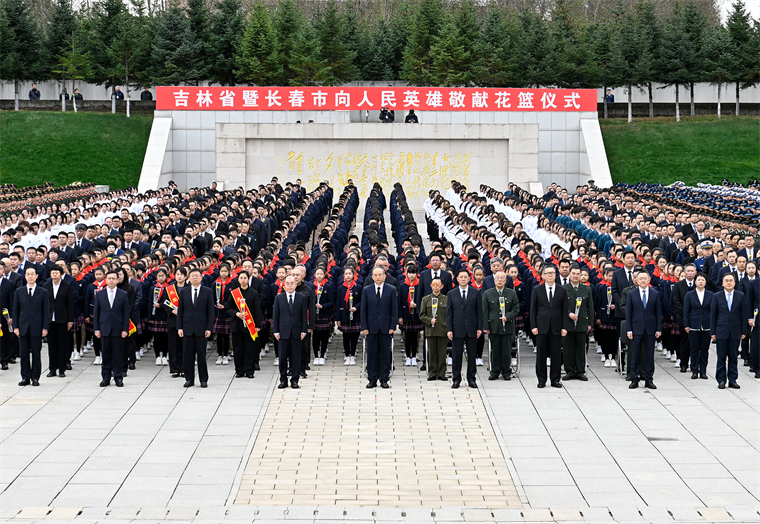 在长省委常委,省人大常委会、省政府、省政协和长春市领导,省法院、省检察院领导,省军区、空军航空大学、武警吉林省总队领导,省直有关部门负责同志,以及老战士、老同志、烈士家属代表,党政机关干部、学校师生、警校学员、部队官兵、消防救援队伍、医护人员、社会各界群众代表参加敬献花篮仪式。(黄鹭 邱国强)