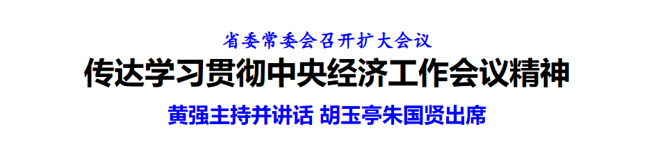 12月12日,省委常委会召开扩大会议,传达学习贯彻中央经济工作会议精神。省委书记黄强主持会议并讲话。省委副书记、省长胡玉亭,省政协主席朱国贤出席会议。