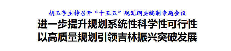 12月24日,省委副书记、省长胡玉亭主持召开“十五五”规划纲要编制专题会议。他强调,要深入贯彻党的二十届四中全会精神和中央经济工作会议精神,按照省委全会部署,胸怀“国之大者”、把握“省之要事”,自上而下强化凝练提升、谋划重点任务、明确实施路径,进一步提升规划系统性、科学性、可行性,为吉林高质量发展明显进位、全面振兴取得新突破提供规划支撑。