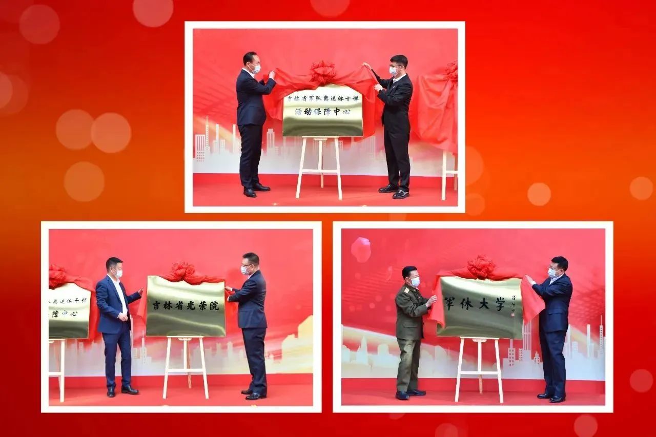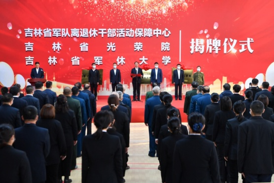 吉林省军队离退休干部活动保障中心、吉林省光荣院、吉林省军休老年大学揭牌仪式现场。